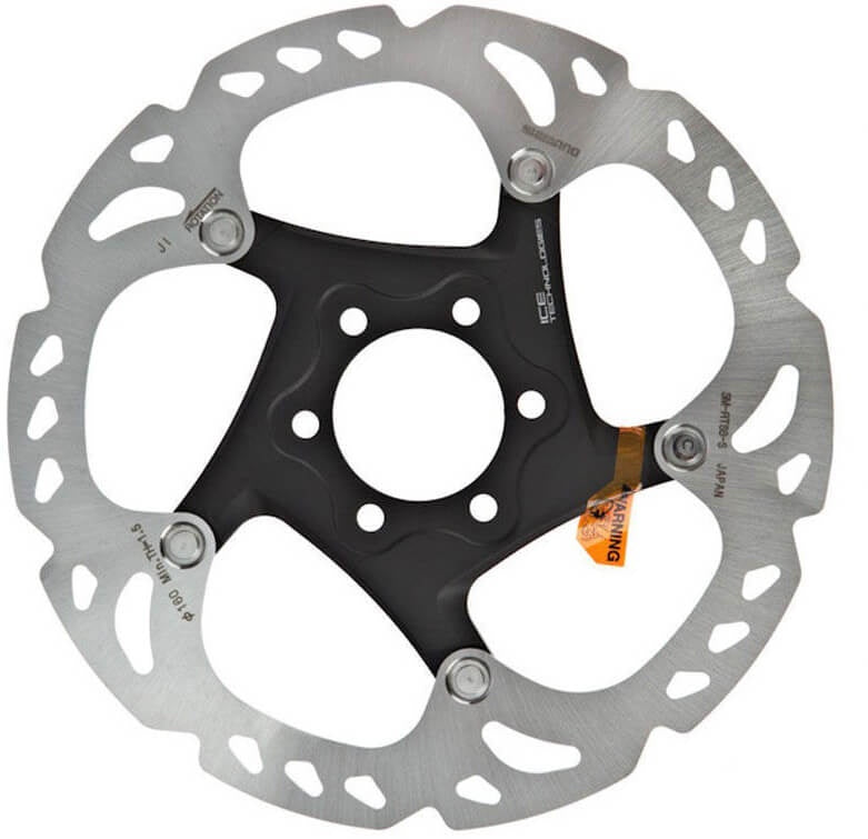 Ice-Tech is Shimano's approach to high-performance braking by reducing operating temperatures. Ice-Tech rotors are a two-piece floating design for increased stiffness and they feature a 3-layer construction. There's an aluminium core sandwiched between two stainless steel outer layers. Aluminium dissipates heat quickly which works perfectly for braking. When combined with Shimano brakes and Ice-Tech pads, riders will notice consistent performance, reduced brake fade and less brake noise.